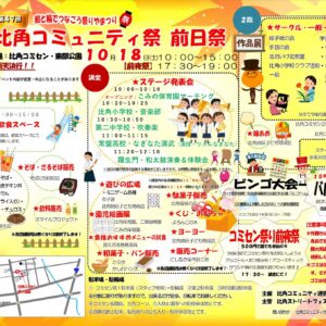 - 比角コミュニティセンターの「ストリートフェティバル」19日に 18日は前日祭柏崎市の比角地区コミュニティ運営協議会(佐野邦男会長)が19日、コミセンまつり「ストリートフェスティバル」を行う。「和と輪でつなごう祭りやまつり」を合言葉に、多彩なイベントを繰り広げる。主管は同フェスティバル実行委員会 […]