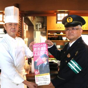 - 冬の交通事故防止運動 柏崎警察署などが飲食店に飲酒運転根絶へ協力求める冬の交通事故防止運動(11~20日)初日の11日、柏崎警察署、柏崎市、柏崎地区交通安全協会は、酒類を提供する市内飲食店の訪問活動を行い、飲酒運転根絶への協力を求めた。(全文548字 12月12日紙面掲載)