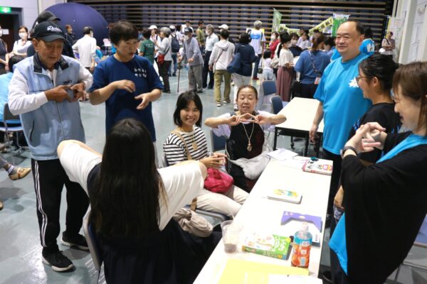 「手話言語の国際デー(9月23日)」にちなみ、「柏崎つながるフェスタ~手話とマルシェと映画の日~」(同実行委員会主催)が、柏崎市西山町坂田の西山ふるさと公苑で開かれた。昨年に続き2回目。来場者は映画「咲(え)む」を観覧して聞こえない人への理解も深めながら、手話、各種体験、グルメなどを楽しんだ。