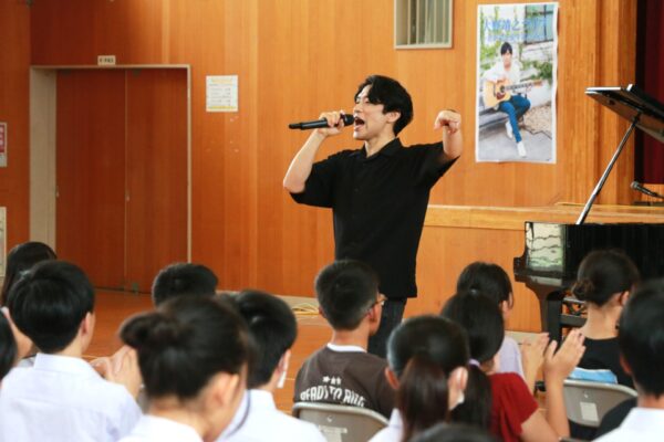 柏崎市立南中学校でシンガーソングライター・大野靖之さんがライブ