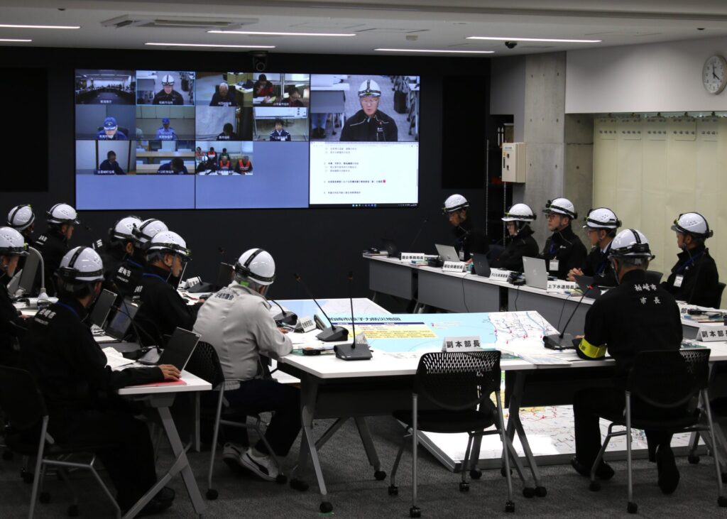東京電力柏崎刈羽原発の重大事故に備えた新潟県の原子力防災訓練が23日、県庁などで行われた。地震との複合災害を想定し、災害対策本部の運営訓練を行い、事故の進展に合わせた住民避難の準備手順など緊急時の対応を確認した。
