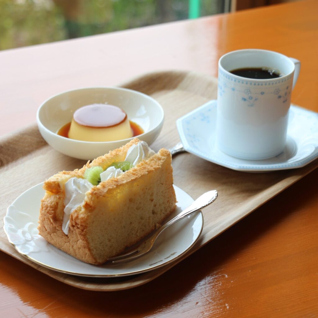 お菓子は主に自家製卵の手作りで、持ち帰りは焼きプリン、シフォンケーキ、マドレーヌの3種。焼きプリンはプラケースが200円、ビン入り300円で、環境への配慮から次回ビンを返却すると50円引きする。気温によって卵の状態が変わるので、季節ごとに最適な固さになるよう工夫を凝らす。シフォンケーキ(150円)は、きなこ、チョコ、抹茶味があり、きなこはふんわり、チョコと抹茶はしっとりした食感がそれぞれ楽しめる。店内飲食もでき、ドリンクの付いた焼きプリンセット、シフォンケーキセット(各300円)、両方のセット(500円)を提供する。