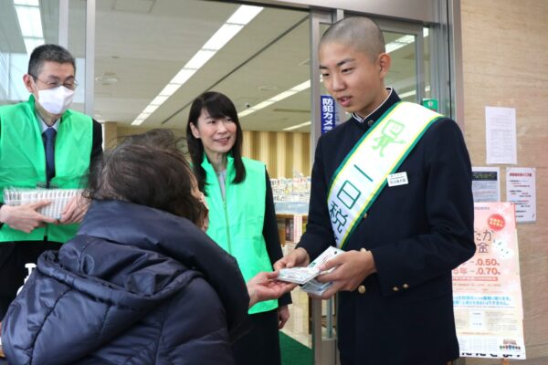 国税庁や全国納税貯蓄組合連合会が全国から募集した「中学生の税についての作文」で入賞した柏崎市立鏡が沖中3年の田辺倫太郎君が「一日税務署長」を務めた。柏崎市内2カ所の金融機関で広報活動を行い、キャッシュレス納付のPRを呼び掛けた。