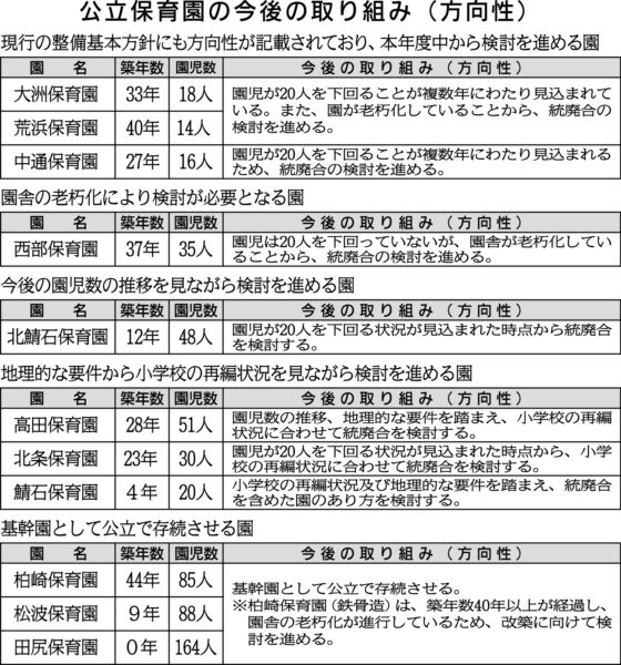 柏崎市公立保育園整備基本方針 統廃合の検討時期明確化