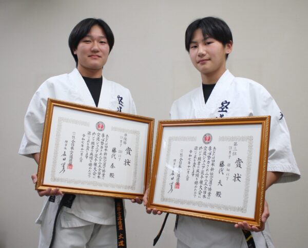 総合格闘武道「空道」の全日本ジュニア選手権大会が東京都で行われ、柏崎空道協会に所属する藤代秦君(柏崎高校1年)が準優勝に輝いた。弟の天君(第二中学校2年)も3位に入り、兄弟で好成績を残した。2人の全日本ジュニアでは優勝したい」と早くも闘志を燃やしている。