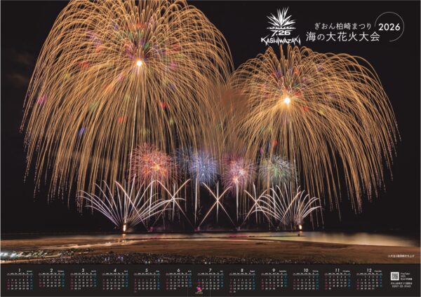 ぎおん柏崎まつり協賛会(会長・桜井雅浩柏崎市長)が2026年用のカレンダーを製作した。海の柏崎ならではの海面に開く花火が表現され、迫力いっぱいに魅力をアピール。併せて、卓上用のカレンダーも作った。希望者に限定販売している。