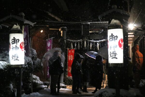 大みそか深夜から三が日にかけ、柏崎市内各地の神社・寺などは二年参りや初詣の家族連れなどでにぎわった。それぞれが一年の無病息災、家内安全などを願った。3年ぶりとなる雪化粧の年越しとなった柏崎地方は、アメダス(柏崎市元城町)で気温0度。深々と雪が舞う中、静かに新年を迎えた。