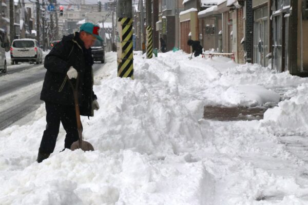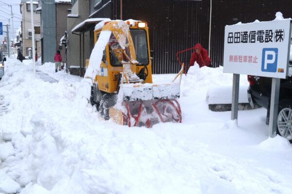 柏崎地方は21日、断続的に雪が降り、夜にはドカ雪に変わった。柏崎市の観測によると22日午前9時現在の降雪量は、柏崎総合高校32㎝、西山町事務所27㎝、高柳町事務所76㎝。高柳町石黒では100㎝の降雪となり、積雪深は2mに達した。深夜には高速道・国道を通行止めにし、今冬初めての集中除雪も実施された。強烈な寒気は25日ごろにかけて長期間居座ると予想され、引き続き警報級の大雪に注意を呼び掛ける。