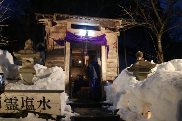 柏崎市西長鳥・岩之入地区で伝統行事「弘法大師百八灯祭」 雪中にろうそくの明かり