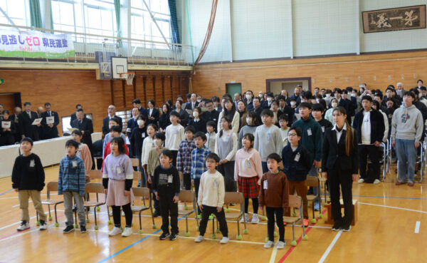 本年度末で152年の歴史に幕を下ろす柏崎市立鯨波小(姥貝栄次校長、児童数24人)の閉校式が21日、同校で開かれた。全校児童のほか、教職員や保護者、地域住民ら約170人が参列。たくさんの思い出を育んだ学校に感謝しながら、新たな一歩を力強く誓った。閉校式は統合が予定される5校の皮切り。4月からは3校による「西小」に統合する。