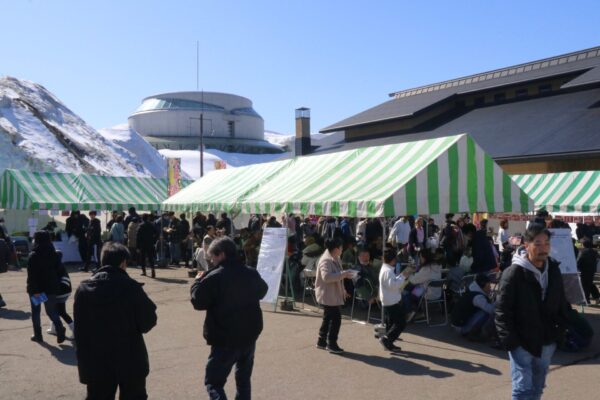 柏崎市高柳町の雪まつり「YOU・悠・遊」が21・22日に高尾の温泉宿泊施設「じょんのび村」と新潟県立こども自然王国で行われた。冬晴れの下、両日合わせて家族連れら約2500人が訪れ、雪上ゲームや多彩なイベント、グルメなどを満喫した。