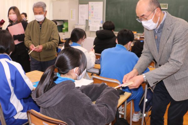 刈羽村の有志グループが高校受験生に合格祈願〝箸〟贈る