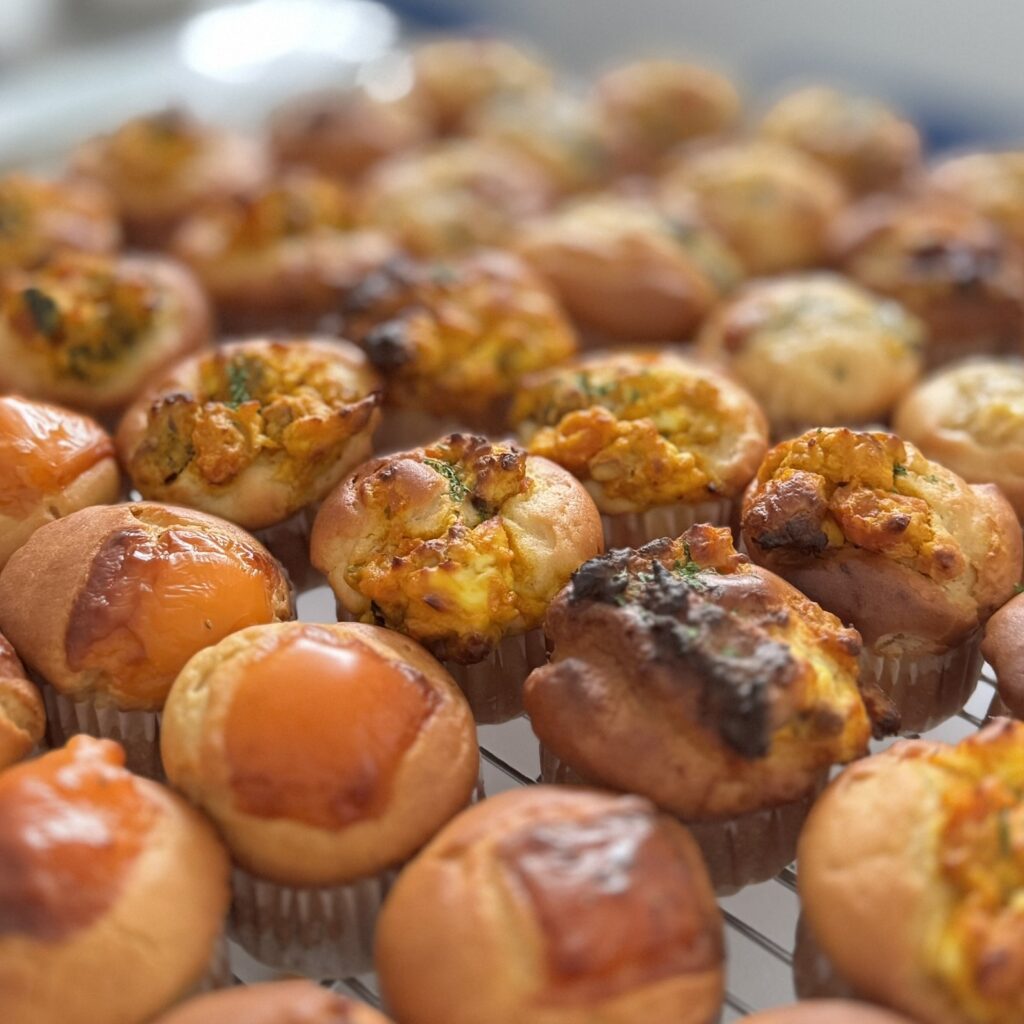 マフィンは米粉を100%使用しており、ふわもち食感と腹持ちの良さが特徴だ。おやつマフィンはクリームチーズや季節のフルーツなどがあり、もちもちの白玉団子とおぐらあん、いもあん、ごまあんなどを日替わりで合わせた白玉マフィンが人気。おかずマフィンは生地にみそを混ぜて甘じょっぱく仕上げており、ランチにもちょうどいい大きさ。グラタン、かぼちゃサラダ、きんぴらなど、意外な組み合わせの味も提供している。