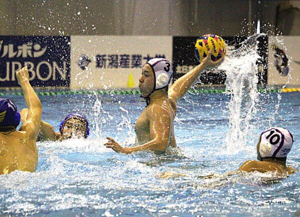 水球の第12回全日本ジュニア(U17)選手権大会「かしわざき潮風カップ」が19日開幕した。初日は男子1回戦が行われ、地元のブルボンウォーターポロクラブ柏崎(ブルボンKZ)は京都府選抜と対戦。序盤はリードする展開だったが、終盤に逆転され11―15で惜敗した。
