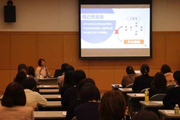 柏崎商工会議所女性部(木村あゆみ会長)が日本セルフエスティーム普及協会代表理事の工藤紀子さんを講師に招き、公開例会を同商議所で開いた。工藤さんは「自己肯定感」について語り、約100人が聴講した。