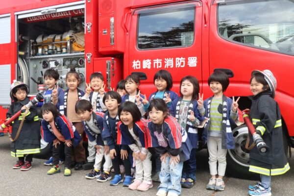 春の火災予防運動(7日まで)に合わせ、柏崎市消防本部は管内4カ所の保育園で「幼年消防クラブ」の防火教室を実施した。このうち、こみの保育園(丸山俊園長)では16日、年中・年長児30人が火の怖さなどを学んだ。