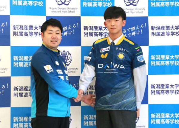卓球Tリーグの金沢ポート(石川県)に入団が決まった産業大学附属高卓球部の1年・吉田蒼選手が24日、同校で会見を開いた。背番号は「1」。「何事でも1番を目指している。高校生でレギュラーを取り、大学・社会人になった時はチー […]