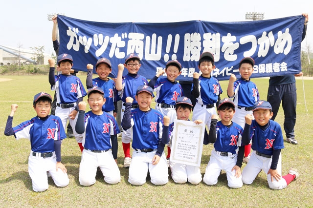 市小学生ティーボール大会で優勝した西山ネイビーズ (2021/05/12)