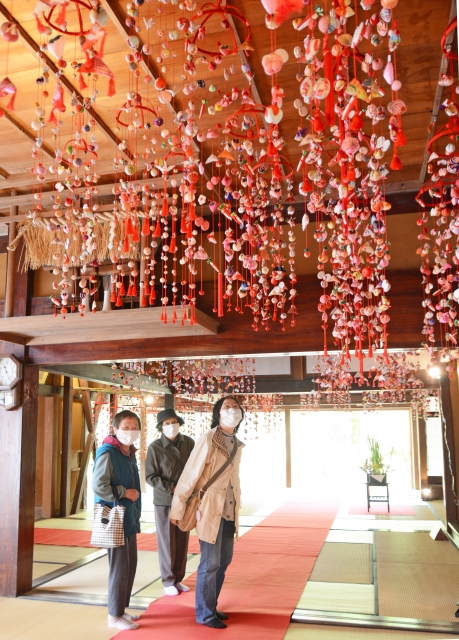 市内愛好家が作ったつるし雛が並ぶ座敷=市内新道、史跡・飯塚邸 (2021/04/26)