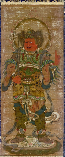 県の文化財として答申された慈眼寺の「絹本著色十二天絵像」の一幅、羅刹天。特別展図録「柏崎市の文化財とその周辺」の表紙にもなった