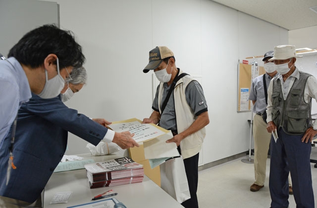 部門ごとに入賞作品を返却される出品者=26日午前、ソフィアセンター