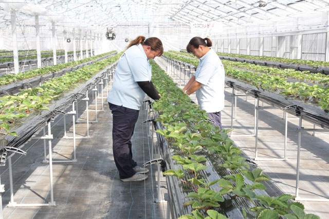 クリスマス、お正月の収穫を目指したイチゴ苗の定植作業=市内鯨波、ファームくじらなみ
