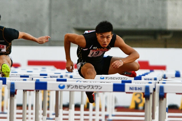 男子110メートル障害予選で自己ベストを更新した産附3年・近藤翠月選手=2日、ビッグスワン