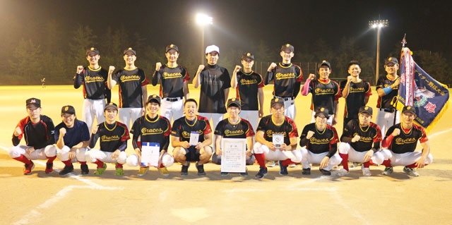 柏崎ナイター野球大会一般の部で初優勝したGRACES=6日、荒浜球場