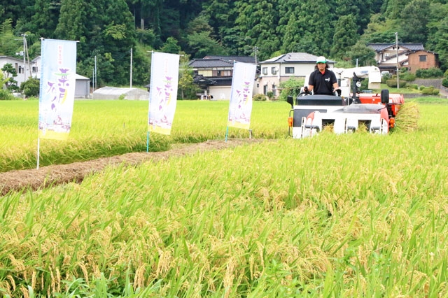 消費者にいち早く届けたいという思いを込めた「葉月みのり」の収穫作業=16日、市内西山町北野 (2020/08/17)