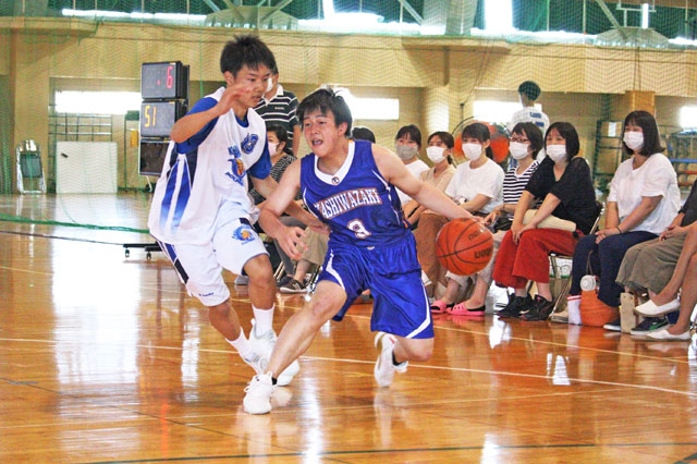 保護者が見守る中、引退試合でプレーする3年生(右)=27日、柏高体育館 (2020/06/29)