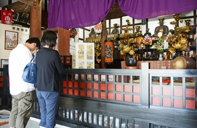 えんま市はなくても、お参りのため、閻魔堂を訪れた人たち=14日午前 (2020/06/15)