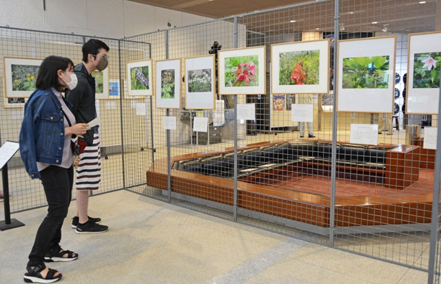 開催中の動植物スケッチ・写真展=市立博物館エントランスホール (2020/06/17)