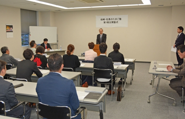「柏崎・社長のたまご塾」7期生の開講式。スタートアップ編を開始した=9日夜、柏崎商議所会議室 (2018/05/10)