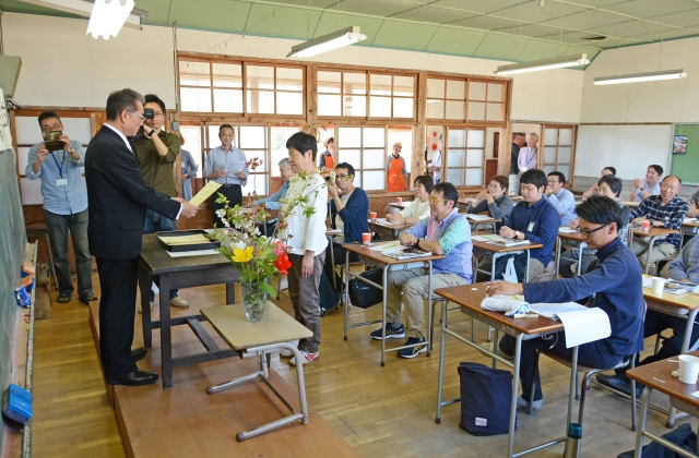 ノスタルジックツアーの卒業式。?校長先生?から一人一人に卒業証書が渡された=21日、別俣きらら