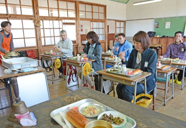 ノスタルジックツアーのリハーサルで再現された給食の時間=3月31日、別俣きらら  (2018/04/03)