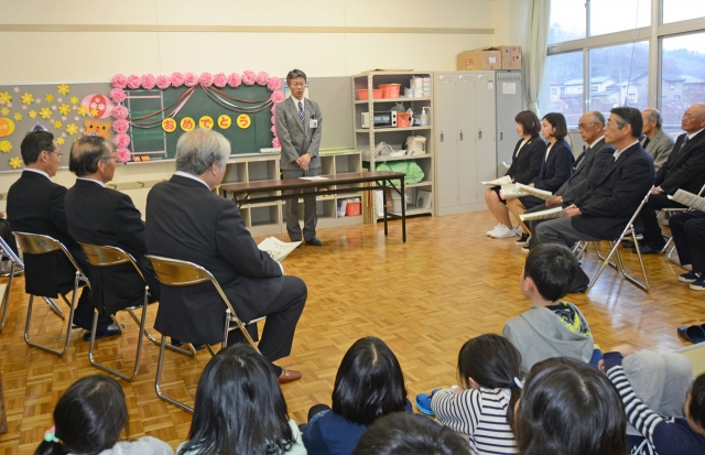 地域待望の鯨波児童クラブの開所式=鯨波小内 (2018/04/10)