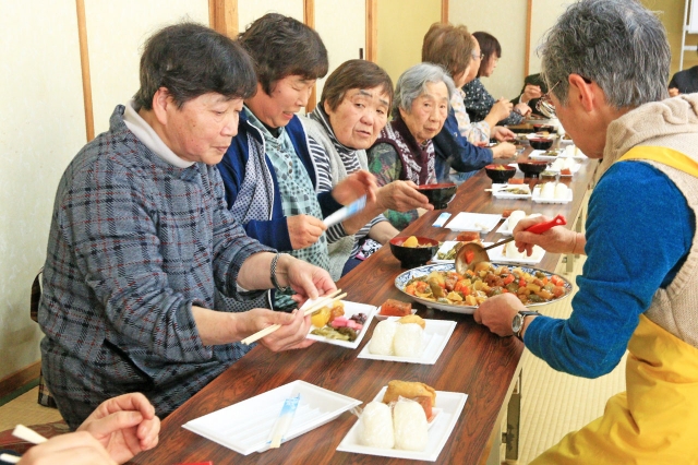 刈羽節成きゅうりを使ったアイデア料理を味わい、ふれあいを深めた「にしなか菜々彩くらぶ交流会」=16日、西中通コミセン