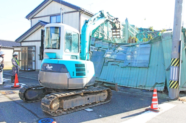 法律に基づき、開始された行政代執行による建物の除去=13日午前、市内荒浜4の空き家