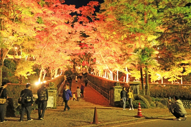 天候にも恵まれ、大勢の人が紅葉を楽しんだ松雲山荘ライトアップ=13日 (2017/11/15)
