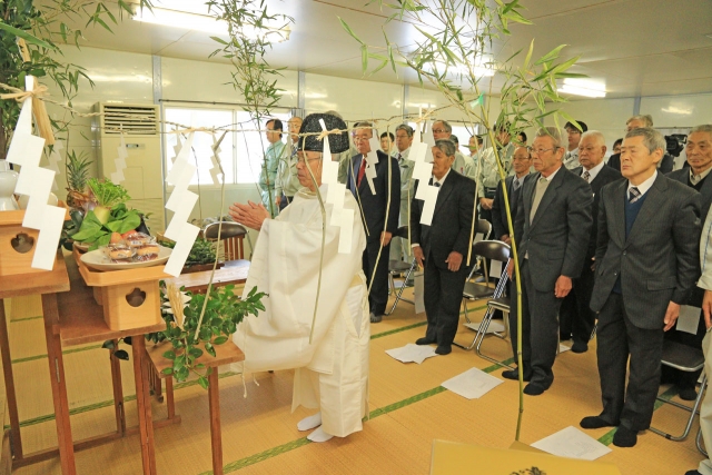 市野新田ダムの盛り立て完了式典=21日、現場事務所 (2017/11/21)