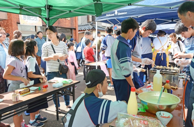 「和と輪」をテーマにした比角ストリートフェス。二中生もいろいろな屋台を出した=市内四谷1