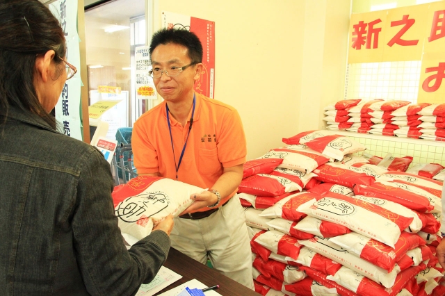 一般販売開始に先立ち、予約者に引き渡された県の水稲新品種「新之助」=14日、市内田中の愛菜館