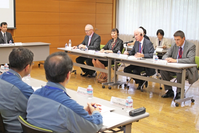 IAEAの安全性に関するフォローアップ調査で評価を述べるチームリーダーのピーター・タレン氏(前列右から2人目)=4日午前、柏崎刈羽原発