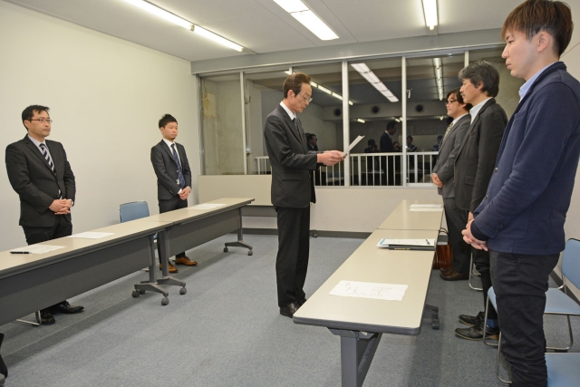 市の障がい者活躍推進アドバイザーの辞令交付式。新規事業として4事業所・6人を任用した=4日夜、市役所小会議室