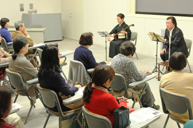 市内出身の堀井真吾さんによる公開講座。「山椒大夫」の朗読で感動を呼んだ=ソフィアセンター多目的ホール (2017/03/15)