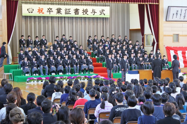 卒業生一人一人に証書が渡された田尻小の卒業式=24日、同校体育館 (2017/03/24)