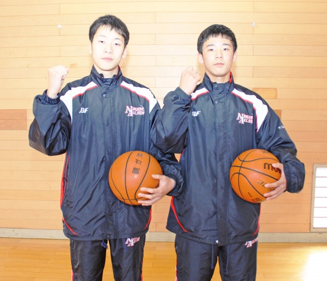 都道府県対抗ジュニアバスケ大会の本県男子代表の横田選手(右)と中曽根選手 (2017/03/25)