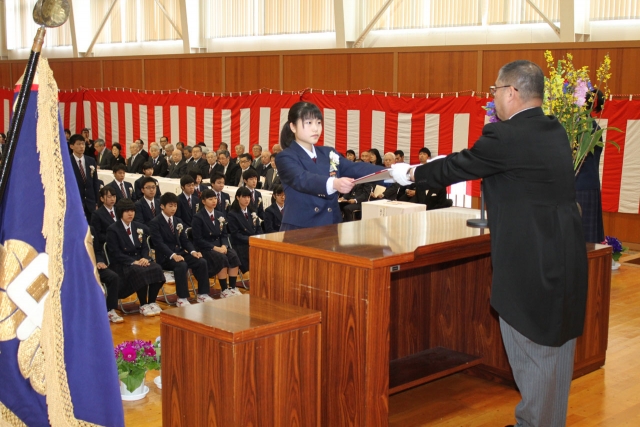 63人に卒業証書が手渡された一中の卒業式=3日午前、同校体育館 (2017/03/03)