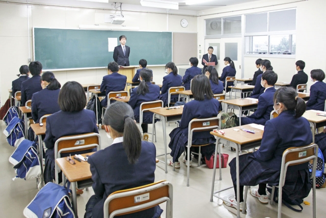 受験票や筆記道具を机に置き、問題用紙の配布を待つ受験生=7日午前9時前、柏高 (2017/03/07)