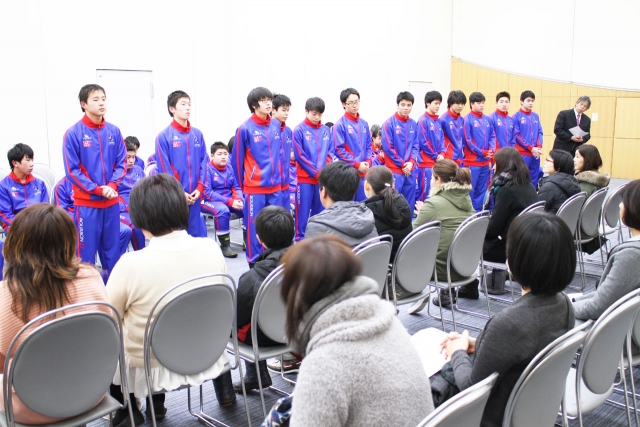水球の潮風カップ出場者を激励した柏崎水連の壮行会=7日、市民プラザ (2017/03/08)